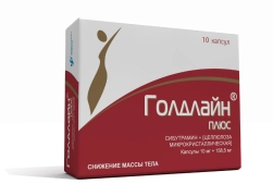 Голдлайн Плюс по 15 мг. Цена такого препарата сибутрамина несколько выше, но